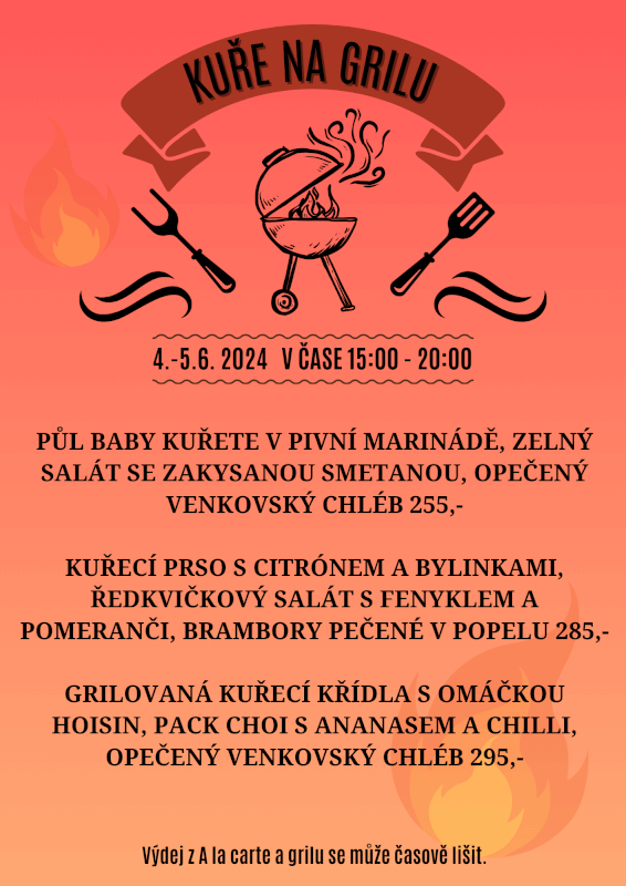 Přijďte si pochutnat na našich grilovaných specialitách 4.- 5.6. v čase od 15:00 do 20:00hod. Těšit se můžete na: ...